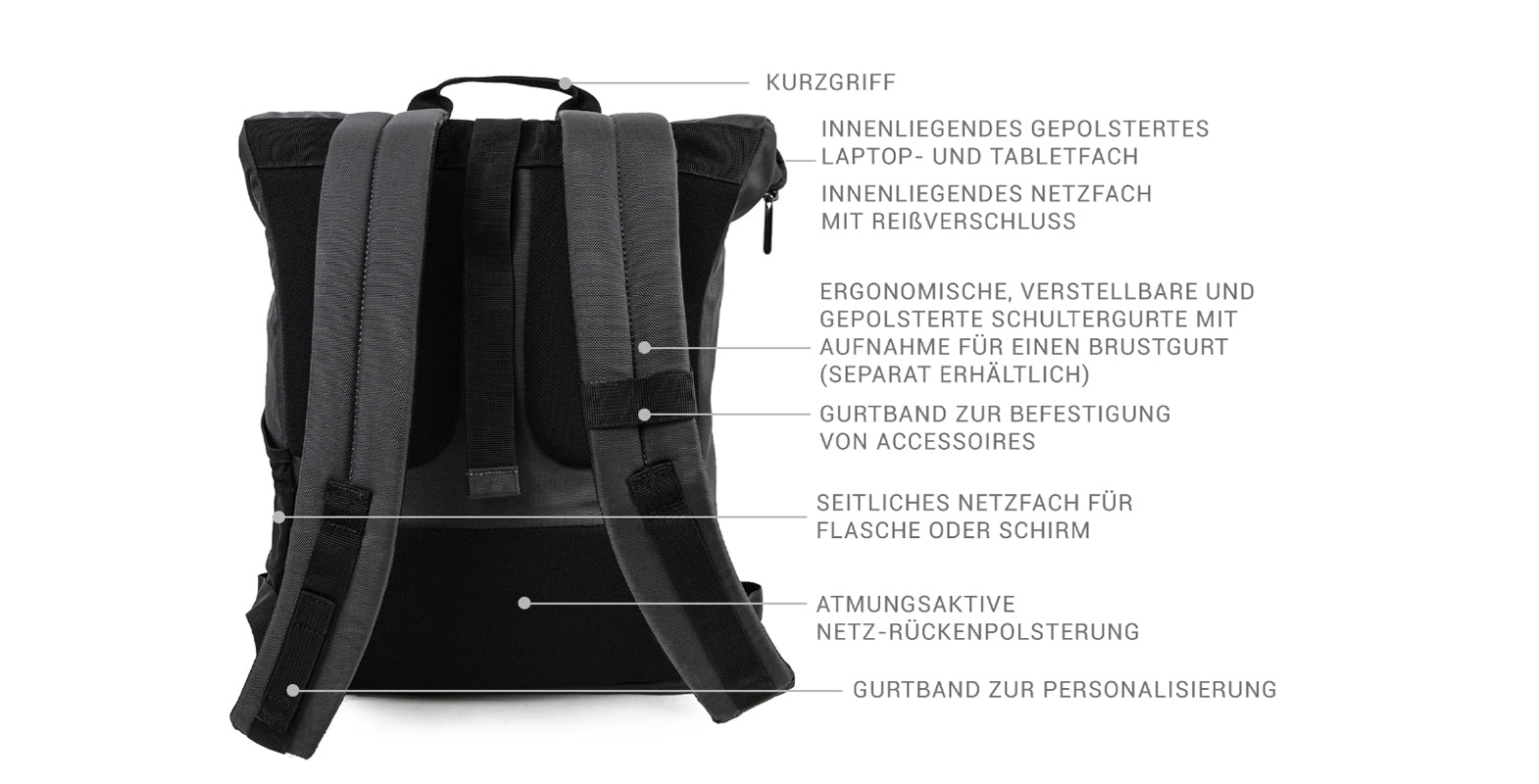 - Laptopfach: 22,2 x 31,3 x 1,6 cm