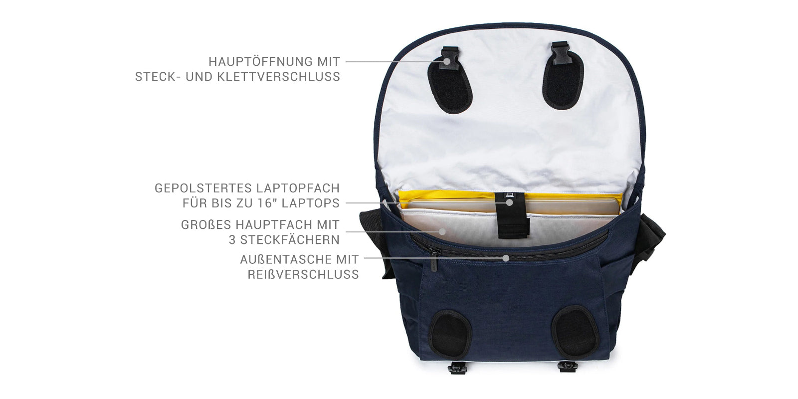 - Laptopfach: 35,6 x 24,9 x 1,7 cm