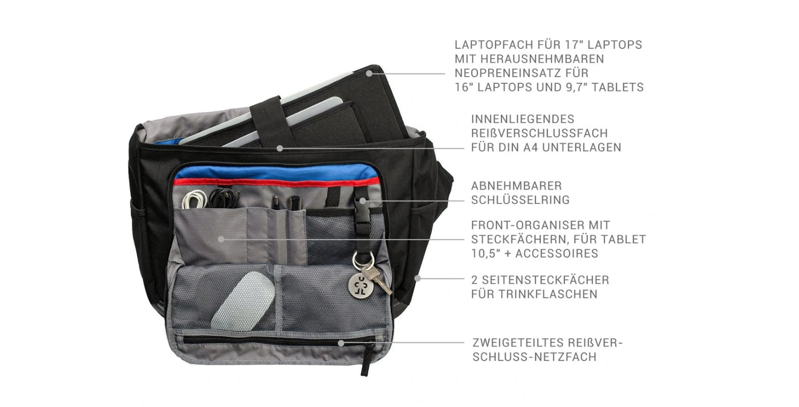 - Laptopfach: 43,0 x 29,0 x 4,3 cm