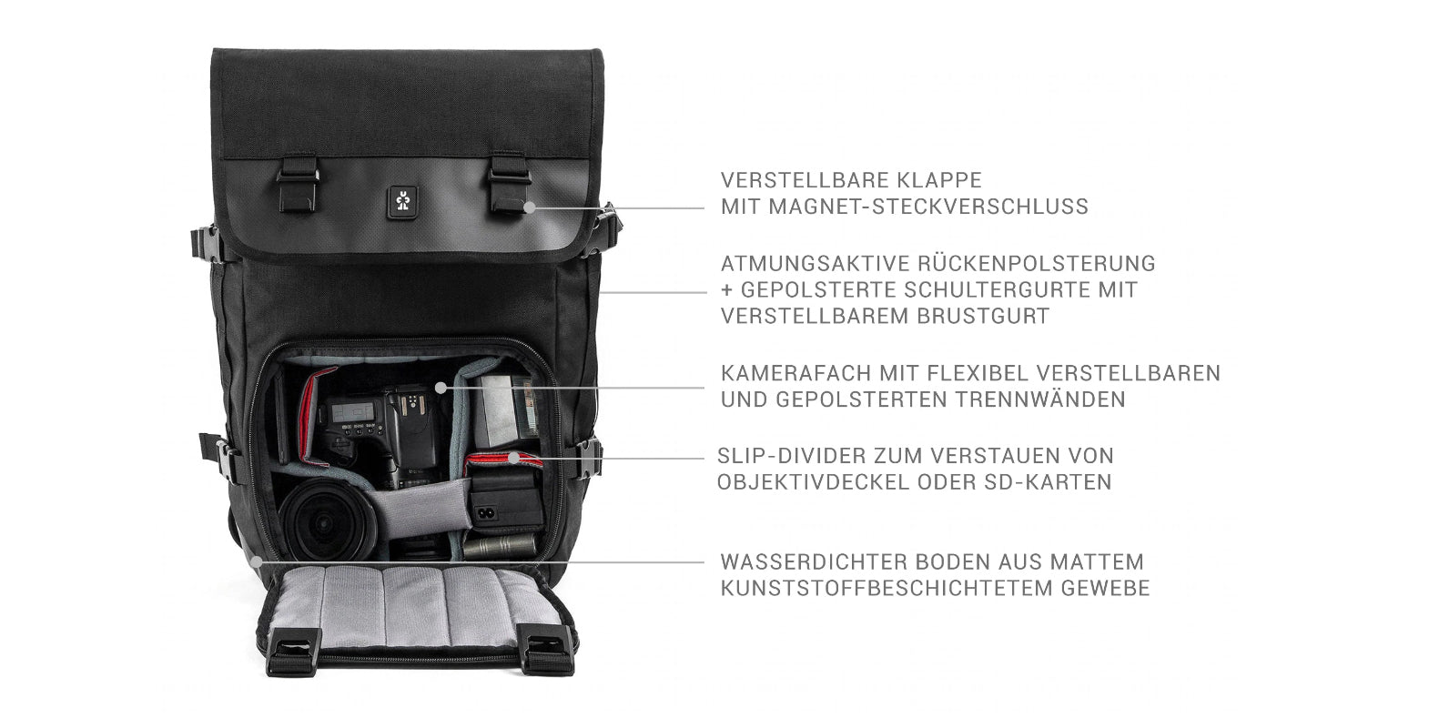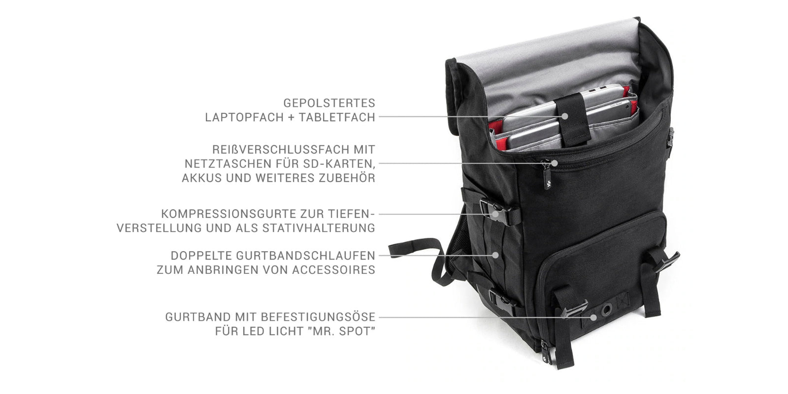 - Kamerafach: 34,0 x 21,0 x 13,0 cm