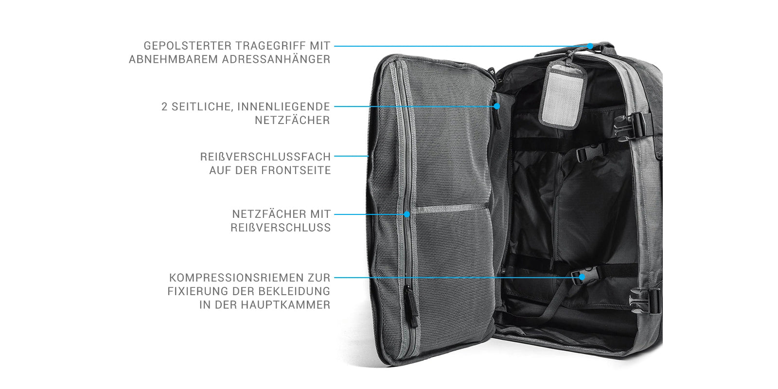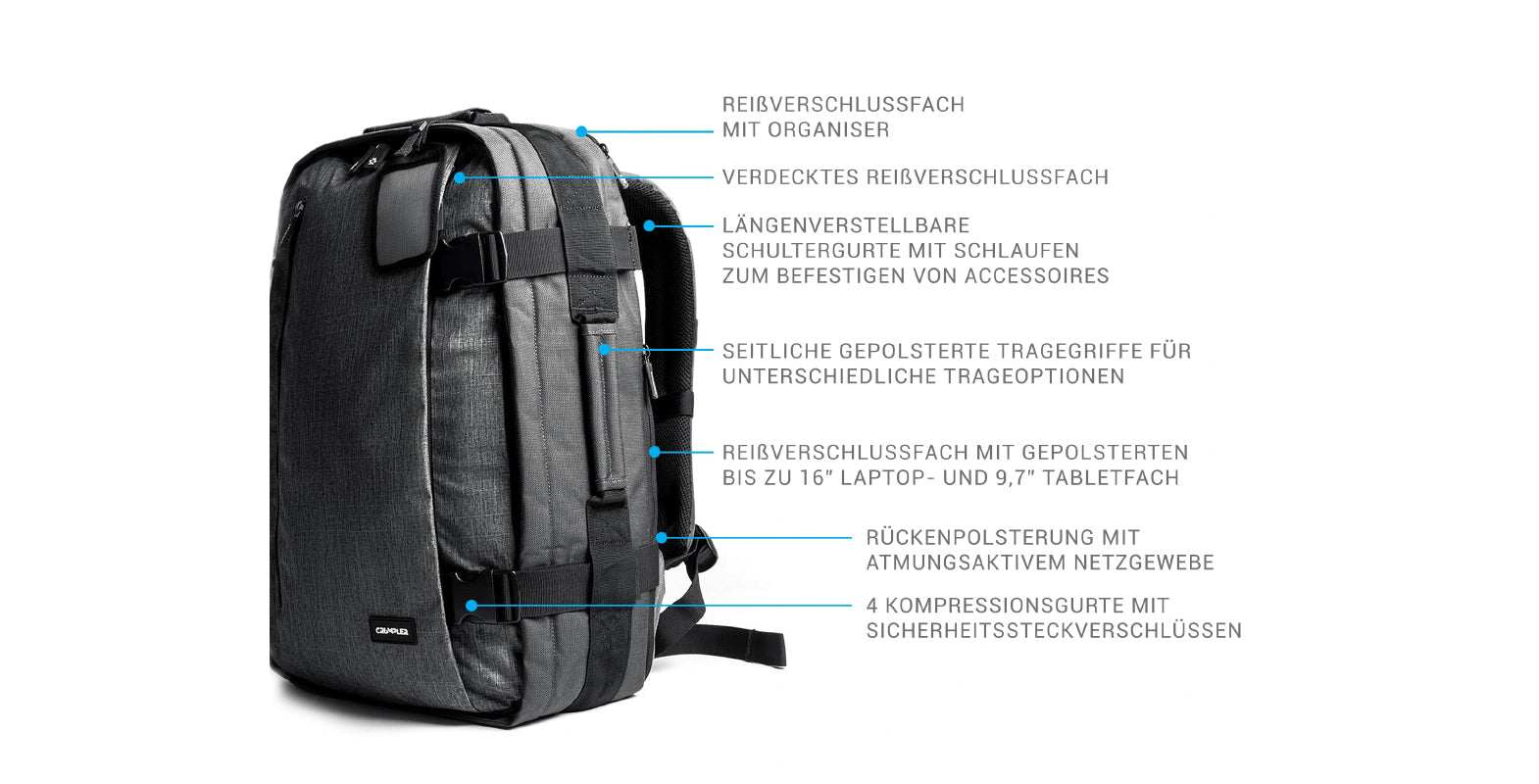- Laptopfach: 24,9 x 35,6 x 1,7 cm